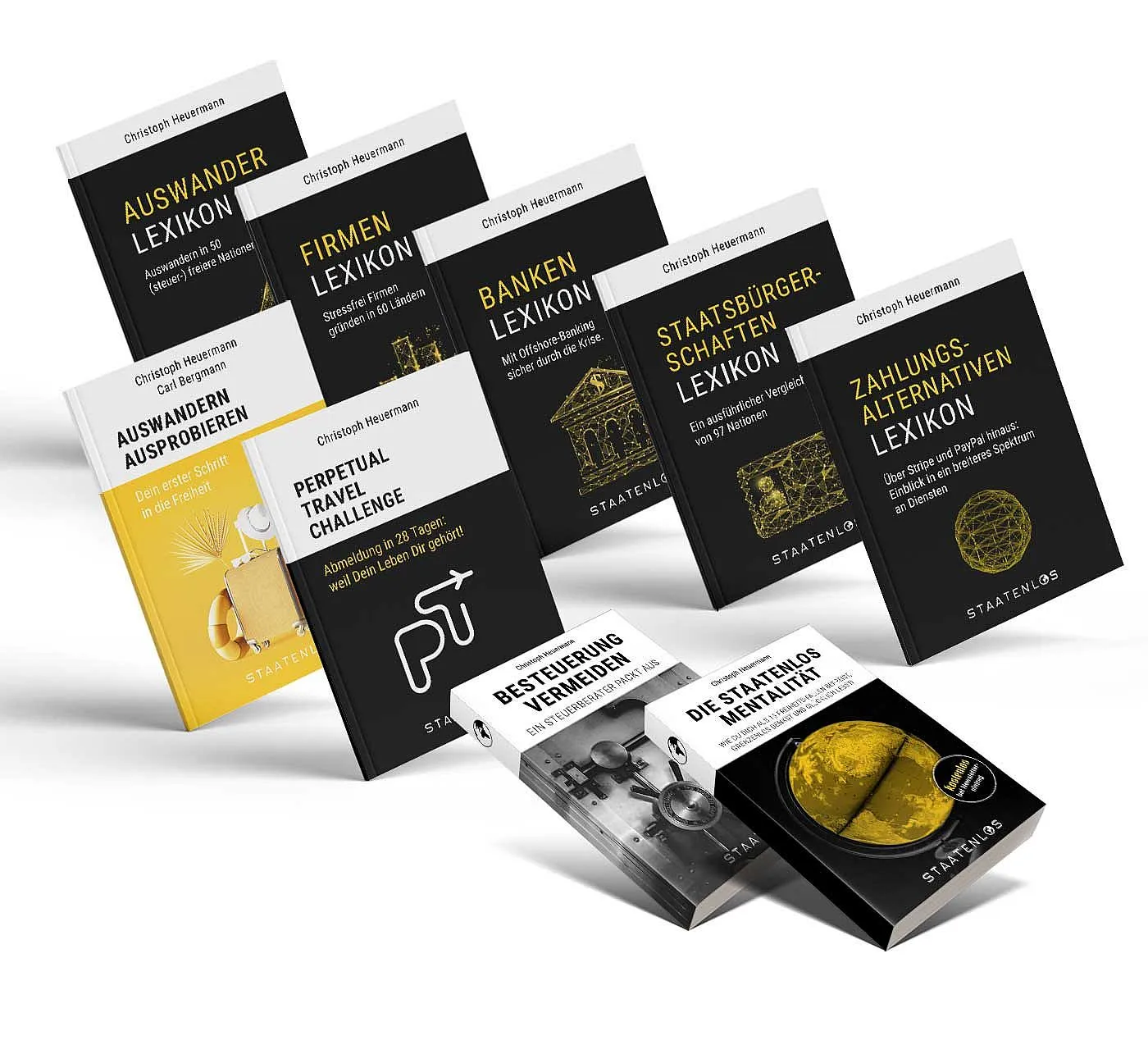 Christoph Heuermann bietet eine 90-minütige Expertenberatung in den Bereichen Flaggentheorie, Wohnsitzverlagerung, Firmenstruktur und Steueroptimierung an. Seit 2015 hat er Hunderten geholfen. Es gibt auch eine Telegram Messenger Beratung mit verschiedenen Paketen: Single (1 Frage für 0 €), Multi (5 Fragen für 497 €), Extended (10 Fragen für 797 €) und Ultimate (20 Fragen für 997 €), jeweils gültig für ein Jahr. Du kannst auch eine Beratung mit einem kompetenten Staatenlos Teammitglied buchen, wobei Christoph den optimalen Gesprächspartner basierend auf Deiner Problemstellung vermittelt.